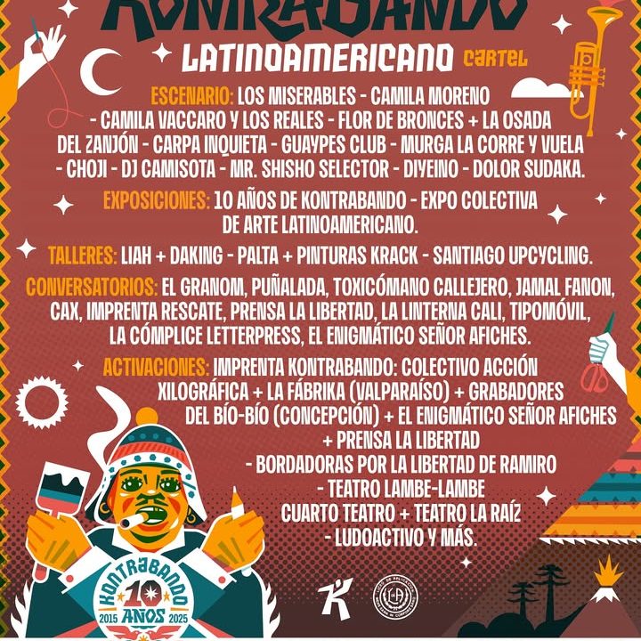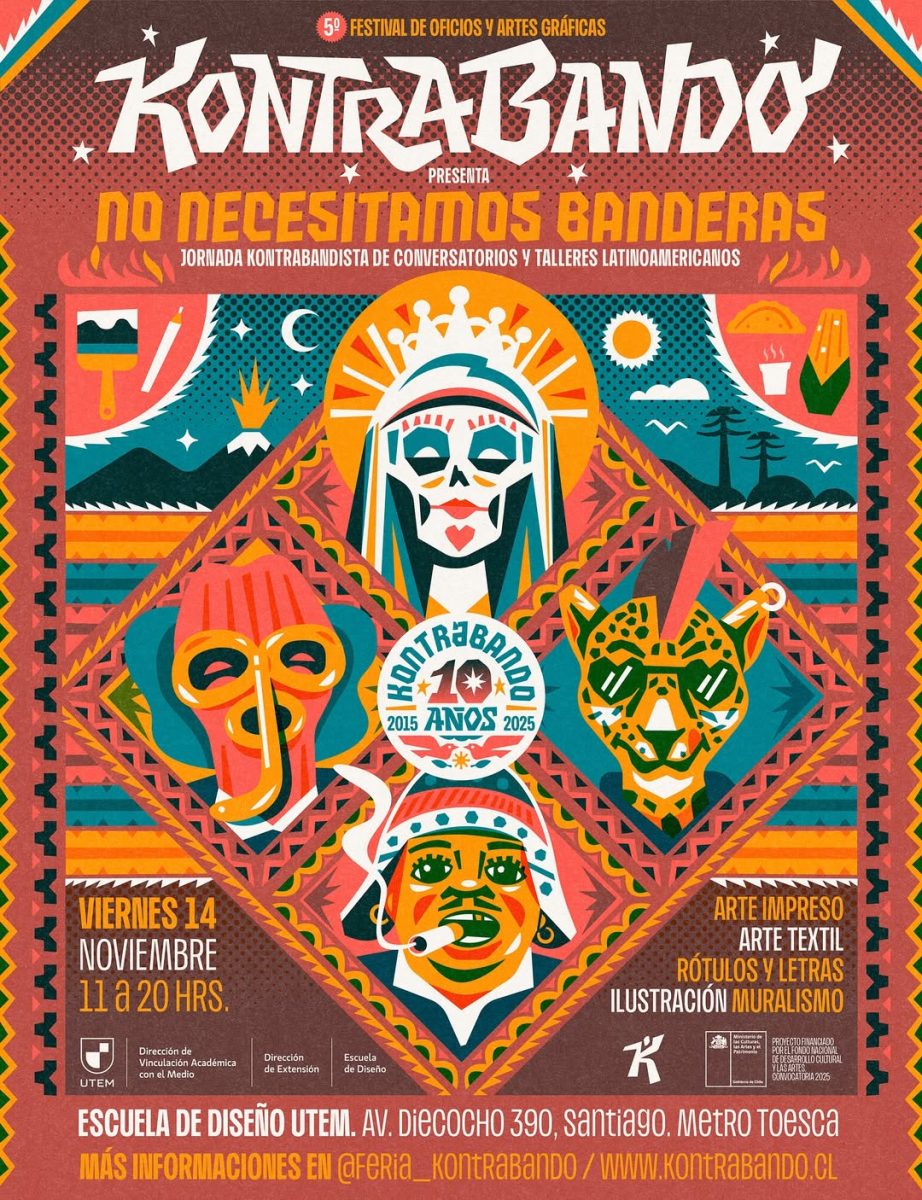 🌞 Se suma a la celebración de estos 10 años de Kontrabando la Jornada Kontrabandista “No necesitamos Banderas”, donde podrán participar, este viernes 14 de noviembre, de una serie de ENCUENTROS TRANSFRONTERIZOS en los que conversaremos y compartiremos experiencias de manera distendida y horizontal, sobre el arte latinoamericano en relación a los oficios de: